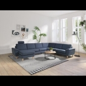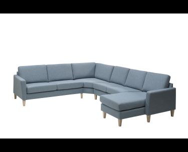 Den viste hjørnesofa / u-sofa står i stof 2 altid høj kvalitet af stof. Dette er PASSION Original, med det 15 cm ben og det klassiske forkant udtryk. Sofaen er vist med massive egeben.