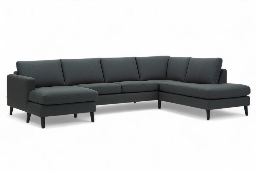 Info: Klassisk U-sofa m. chaiselong og open end.Mål: 332 x 219 Cm