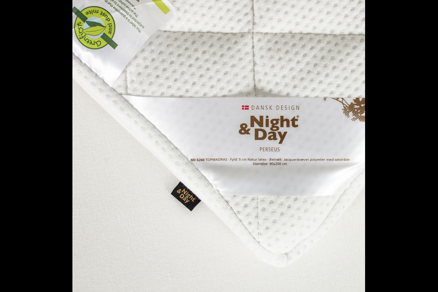Opnå en effektiv trykaflastning og optimal komfort mens du sover. PERSEUS er en ergonomisk, støttende og blød topmadras, fremstillet med 5 cm Talalay natur latexkerne.