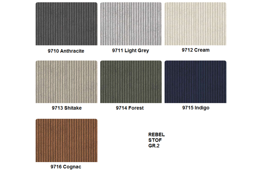 Farver / Str.: Fås kun i Rebel stof (GR 2) eller Soleda læder / skai til STRÆK PRIS