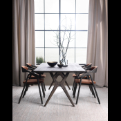 Amelia spisebordet er et elegant og funktionelt spisebord, der forener dansk møbeldesign med høj håndværksmæssig kvalitet. Designet er skabt af Cecilie Kamp og bærer tydeligt præg af et gennemarbejdet formsprog med bløde linjer og solide detaljer. Bordets stel er inspireret af klassiske træpropeller og giver et karakteristisk udtryk, der understreger bordets unikke identitet.